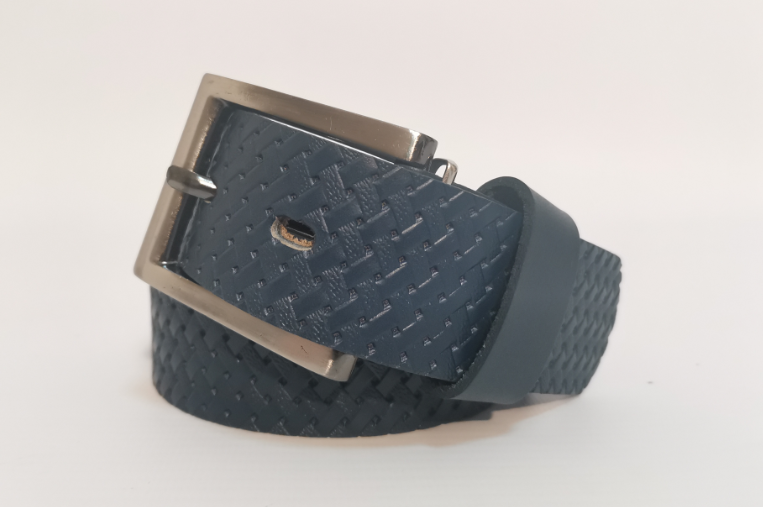 Correa para caballero color AZUL con estampado decorativo, artículos en cuero.