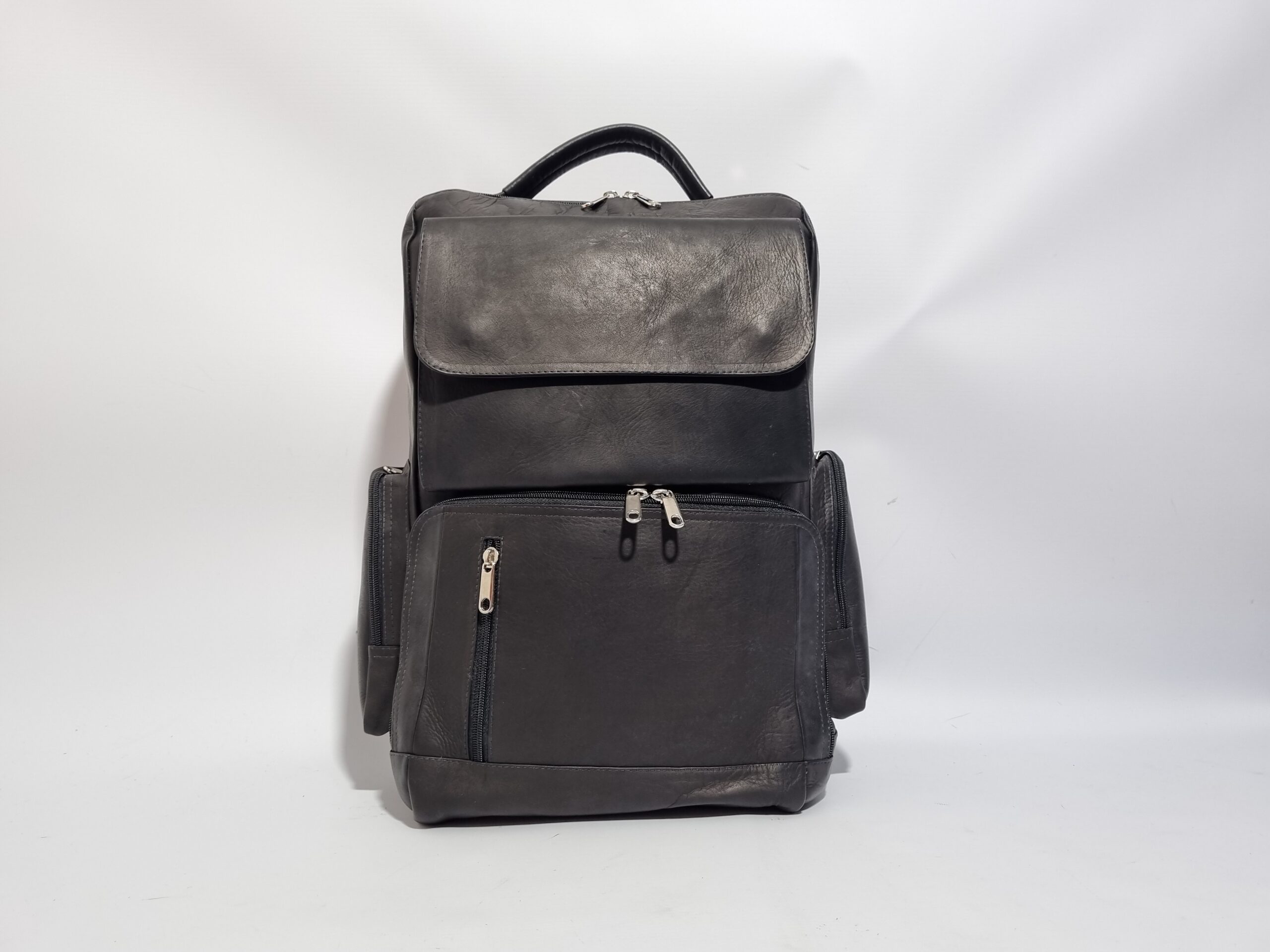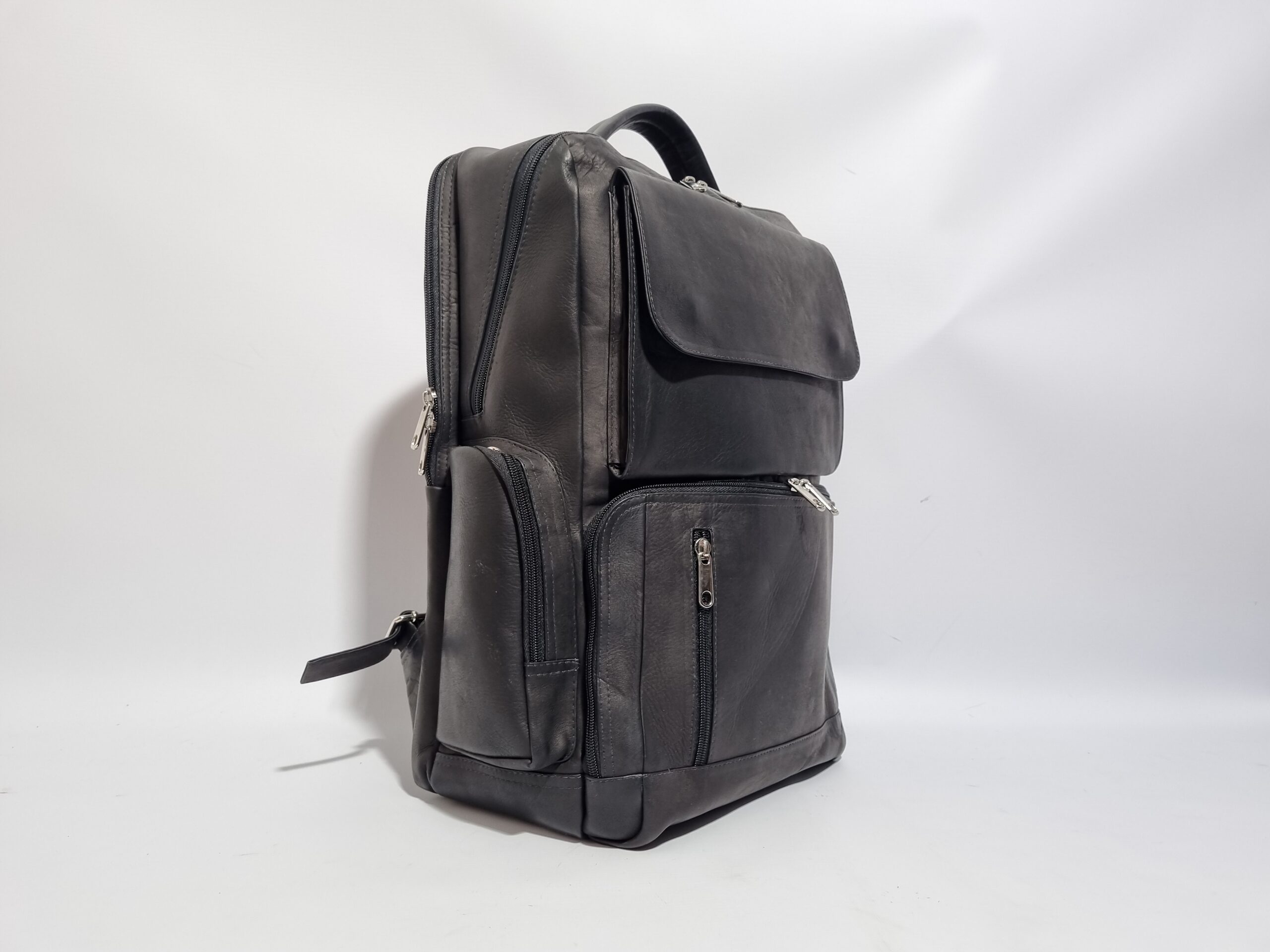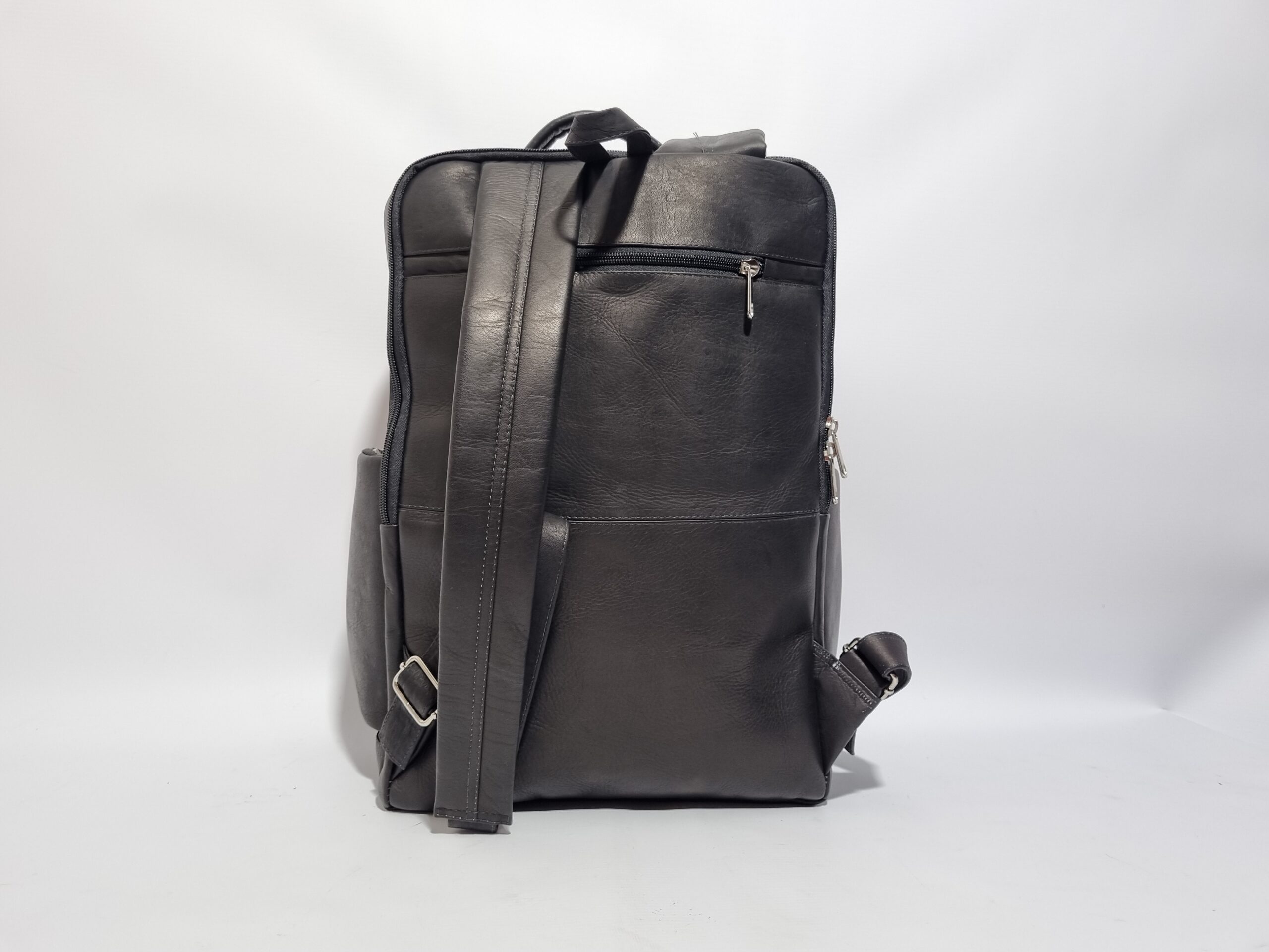 Maleta en cuero color negra con ocho bolsillos con cremallera de seguridad, división externa para portátil y cargaderas regulables. Decoración en hilo fino y excelente tamaño.