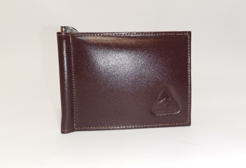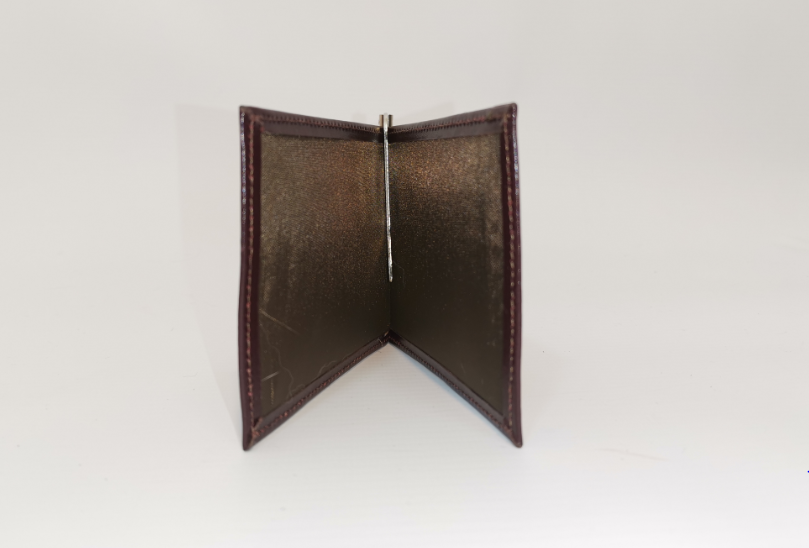 Pisabilletes completamente en cuero con broche para ajustar los billetes.